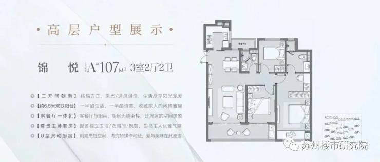 锦悦 高层 107㎡ 户型:三室两厅两卫
