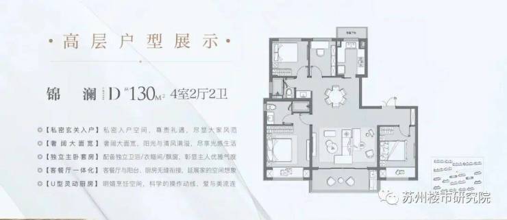 锦澜 高层 130㎡ 户型:四室两厅两卫