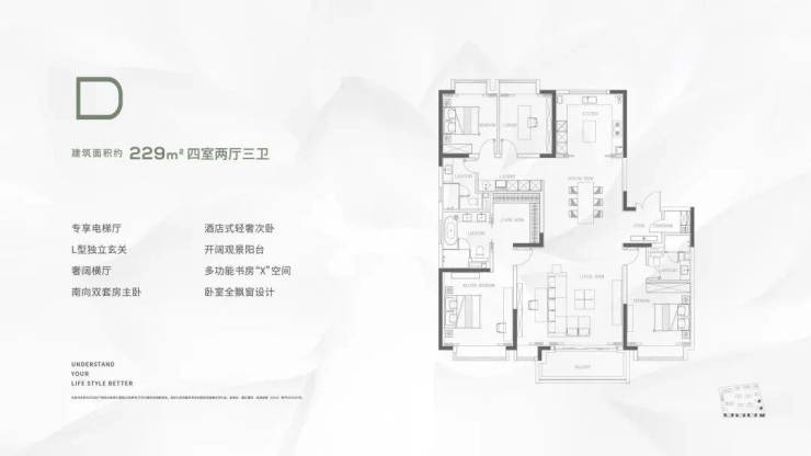 本次主推主力户型,涵盖三房 / 四房改善产品,亮点突出:高得房率 + 多赠送空间,零过道浪费类一梯一户 / 独立电梯厅,私密性与尊崇感兼备LDKB 一体化横厅设计,尺度感超越同级全系品牌精装,配置高端,居住体验一步到位