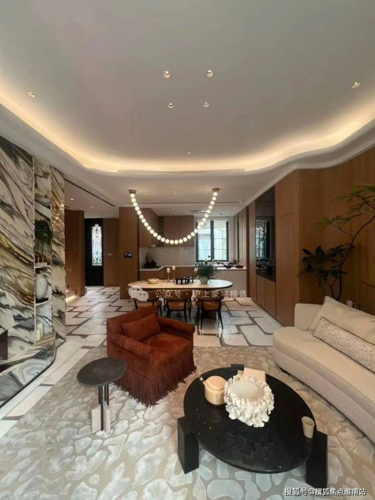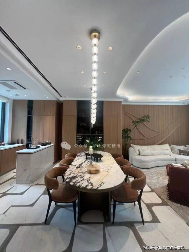 当然,室内更超乎想象。除了在选材上择取了高贵高质的石材、皮革影木等高档材质外,制作工艺才是真正的品质表现。从无限连纹地砖铺设到花瓣拼式的地板效果,以及香格里拉翡翠水刀拼花的背景墙面,整个空间展示的不仅仅是品质,更是审美,接近于艺术的审美表达。