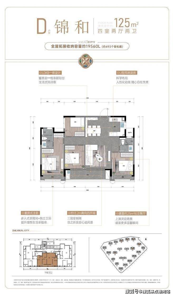 好比这个 爆款四房户型用约125方面积,过出约200方的奢华感
