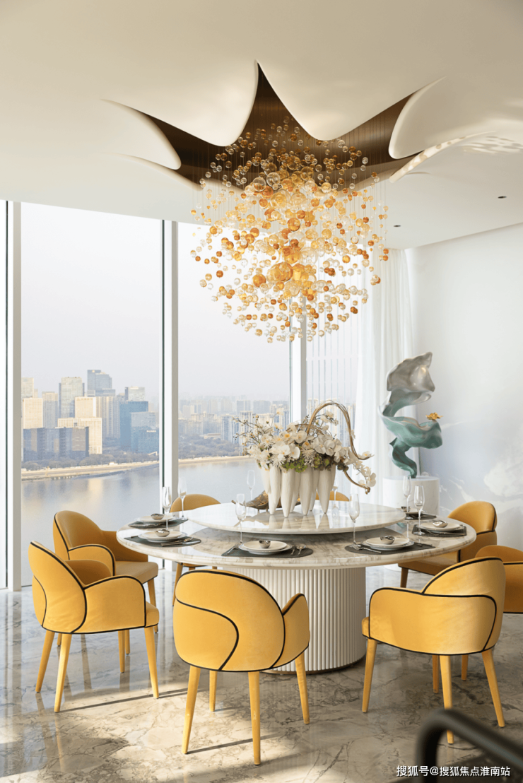 进入玄关,眼前豁然开朗。对于平层宅邸而言,视野便是一切。客餐厅的最大亮点,是一片大面落地窗外的自然江景,天地间最温柔的馈赠。设计师巧妙地解放了空间,打破了所有动线的束缚,把奢华豪邸应有的华贵气度,毫不保留地归还于每一个细节。