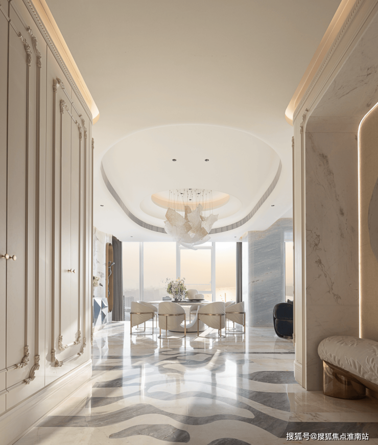 设计师在这处空间中,展现出了非凡的创意与匠心。他巧妙地打破了传统空间的束缚,让动线不再受限,居住者可以自由地穿梭于各个区域之间。这种设计不仅让空间显得更加灵动与开阔,更将奢华豪邸应有的华贵气度,毫无保留地融入到了每一个细节之中。