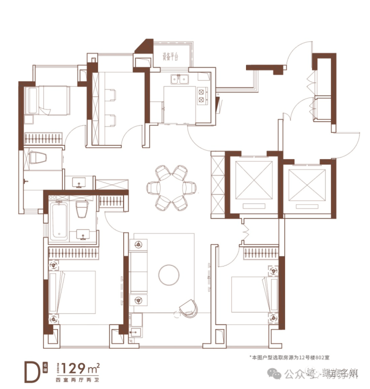 【产品信息】建筑面积约129㎡、130㎡、143㎡、144㎡宽境奢邸