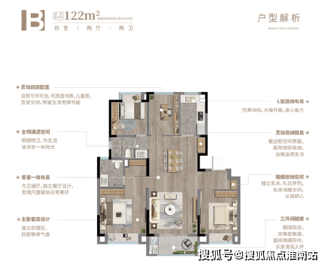 尤其是建筑面积约122平的4房洋房户型在空间和功能设计上独具匠心,表现突出,算的上是“爆款”和“王炸”的存在。