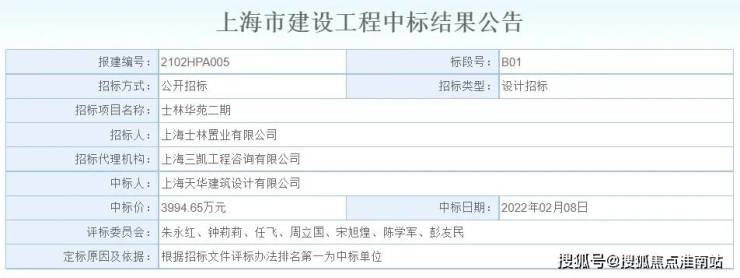 2022年2月8日,上海天华建筑设计有限公司以3994.65万元中标士林华苑二期地块设计项目!