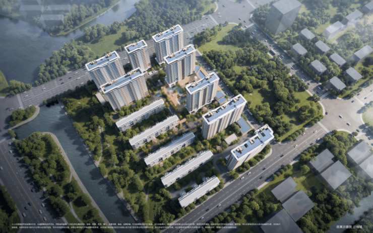 根据方案,项目拟建8栋16-17层高层住宅(含1栋17层保障房),以及5栋6层住宅,共计686户。小区人车分流;车位比约1:1.8,社区内部有水景、下沉式庭院。
