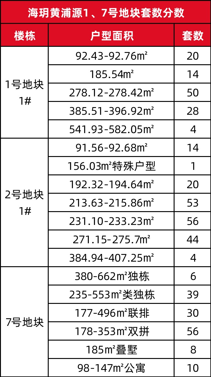 上海建工黄浦新项目「海玥黄浦源」1号地块超高层住宅、7号地块风貌别墅,大致的户型套数分布如下👇
