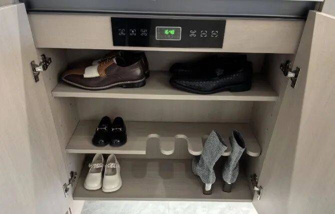 入户鞋柜标配鞋柜精灵,同时分为不同的功能区,方便收纳长靴