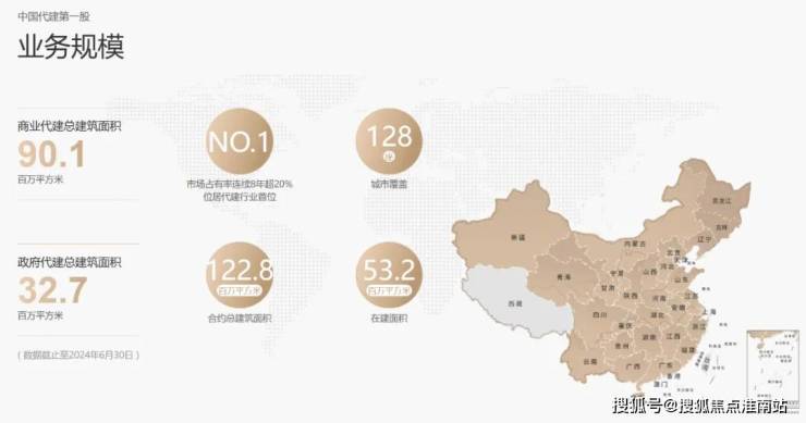 涵盖128个城市,总建筑面积122.8万平米(其中商业代建90.1万平米、政府代建32.7万平米),在建面积3.2万平米(数据截止2024年6月30日)。