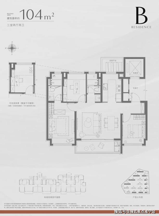 104㎡三房两厅两卫:约5.3米大横厅 + 270°转角窗,LDKB一体化,改善首选