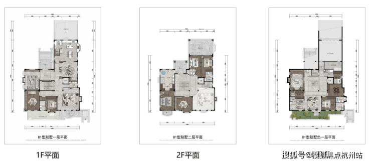 项目为纯独栋别墅社区,共6种法式庄园风格户型,主力面积段为819–1600㎡(含地下):