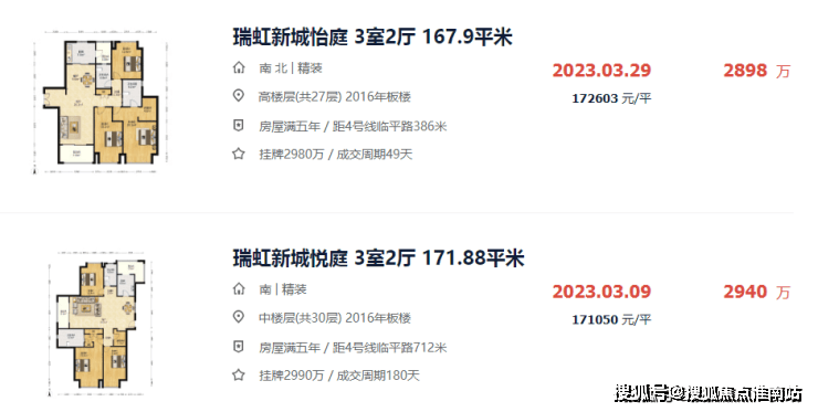 在这一轮上海房价普遍回调30%左右时,瑞虹回调幅度15%左右相对坚挺,最新的成交价依然有14万+,与徐汇滨江部分楼盘不相上下。