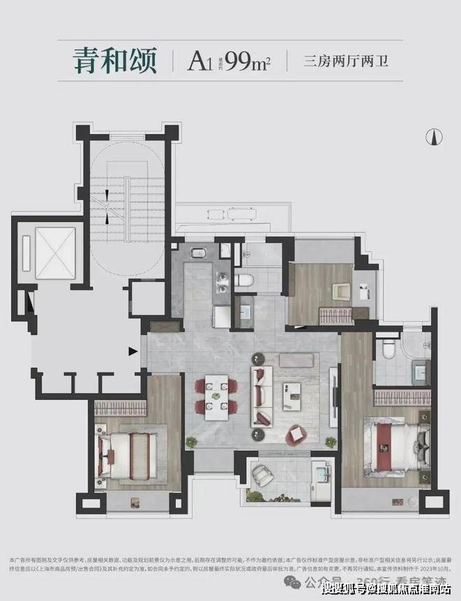 99㎡三房双卫:原价 380 万起,独家折扣 350 万起(飞机户型 + 南北通透)