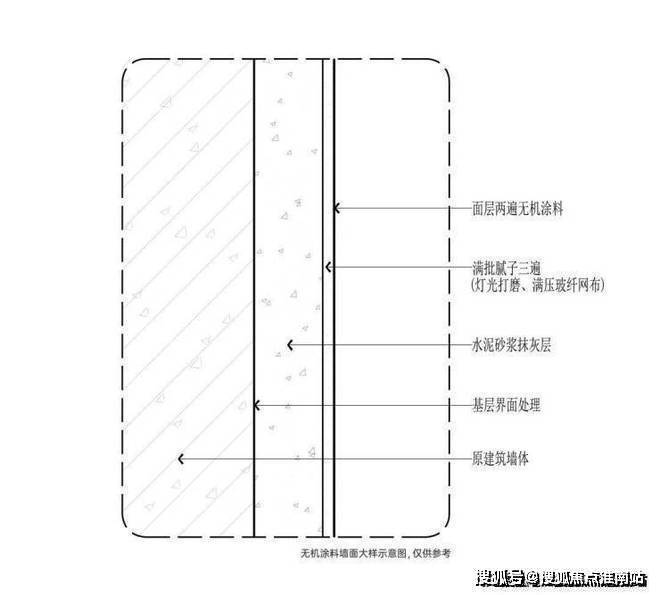 比如 墙面工艺标准, 由原建筑墙体基层界面主体开始,水泥砂浆抹灰层找平,到满批腻子在灯光下仔细打磨三遍,满压玻纤网布包括墙顶部分,最后再两边涂抹外墙无机材料。