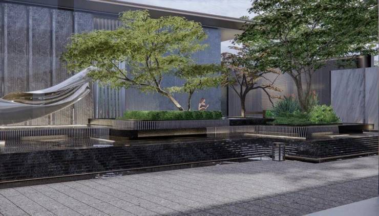 社区内部景观设计理念以双轴、一环、一会所、三进、多花园的景观结构来布局整个社区空间。