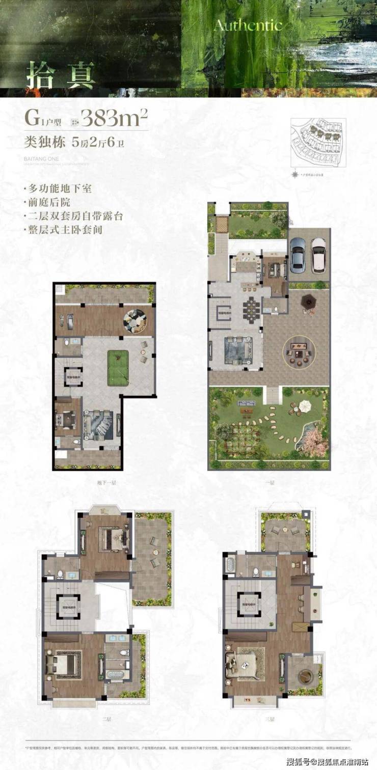 独栋、类独栋的终极形态,户户大尺度约400-600㎡的围合式私属院落,是家庭生活的情感容器,更是精神休憩的私有领地。