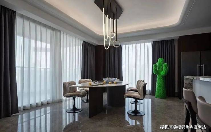 The just-right curve design flows naturally like flowing clouds and water, not only outlining the elegant contours of the dining area but also adding a touch of softness and gentleness.