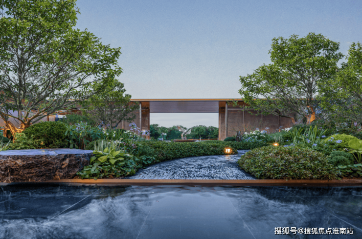 示范区做在实体,也就是未来小区的大门,霸气恢弘,水系景观已呈现,雕塑神似浪花/翅膀,寓意美好!