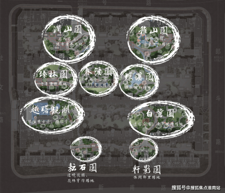 园区打造了 9大景观组团,对应着不同年龄段业主的生活场景,极具观赏性的同时还兼顾了实用性。