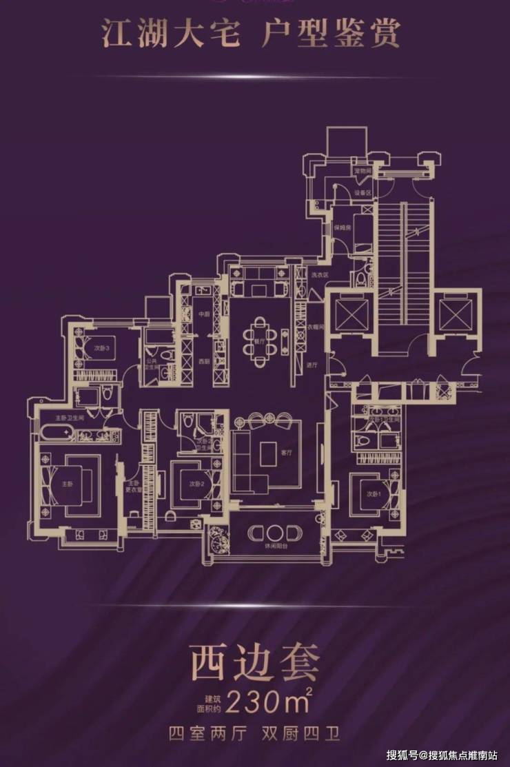 独梯独户230㎡西边套:4房2厅+中西双厨+4卫,大面宽舒适度极高。