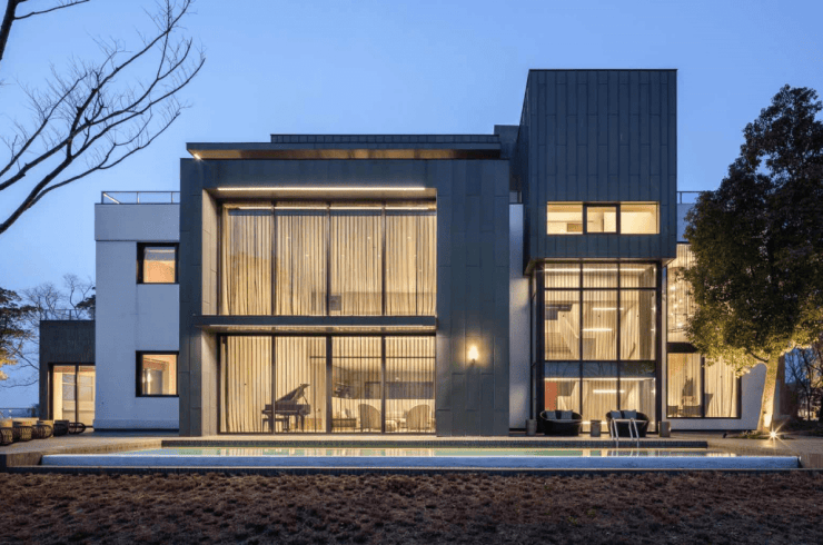 740㎡独栋别墅:总价约2300万元,采用青砖与船板木组合外立面