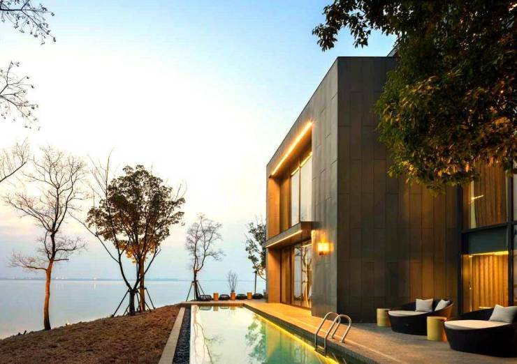 世界级建筑设计:由纽约Tsao&McKown建筑事务所、"中国现代主义建筑之父"张永和及如恩设计研究室联手打造,采用青砖、船板木及日本进口弹涂工艺,建筑与湖景完美融合