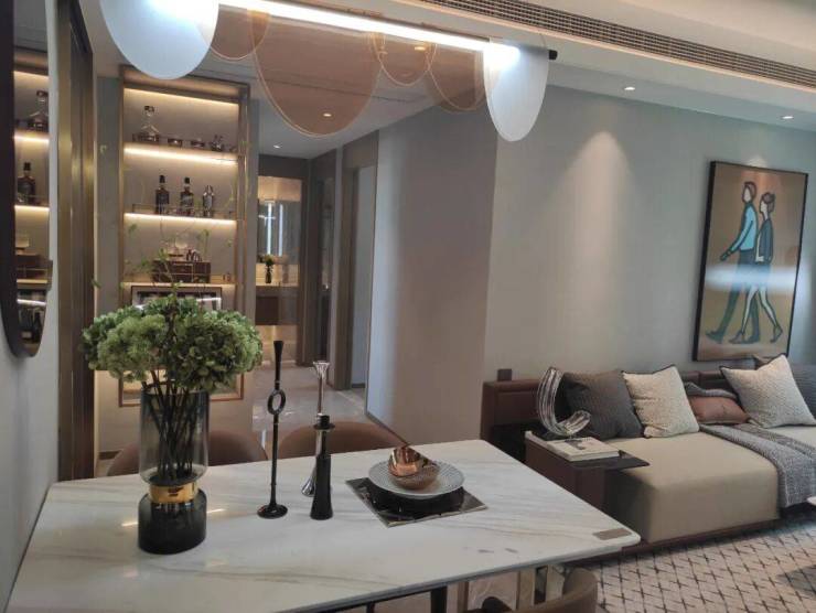 中叠很特别,首先入户前厅有约6.4米挑高,归家更有仪式感和尊崇感。