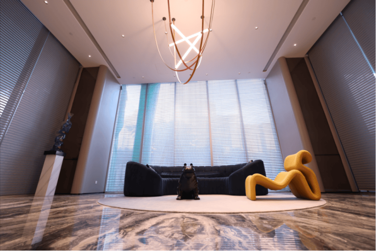 大堂墙面全部采用定制弧面铝板,每一个弧面都代表着经费。
