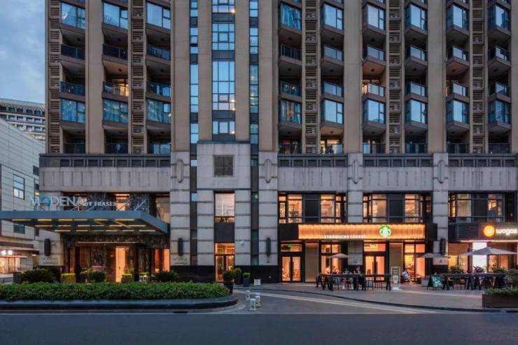外立面采用都市现代风格,以现代手法诠释古典精神,采用低碳环保的铝合金板装饰,以造车的细节标准打造建筑,体现超强的精工品质和高级感。从阿斯顿马丁概念汽车设计中获得灵感,采用经典且摩登的色彩搭配,以弧度、材质对比和建造细节来呈现建筑的高级感和新古典主义气质。