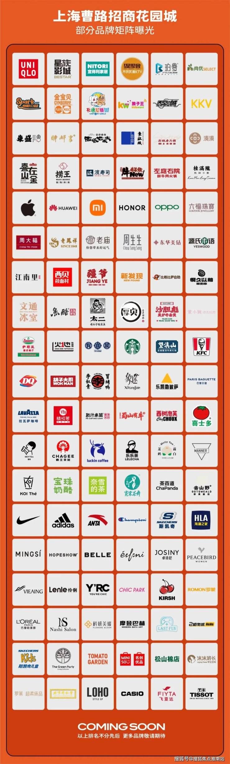 上海招商曹路花园城于2023年正式开业,98%招商率、95%开业率、区域首店比例超50%、首日客流10万+,其引入的商业品牌如下: