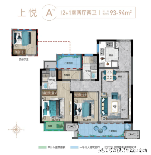 上悦 A户型 建面约93-94㎡