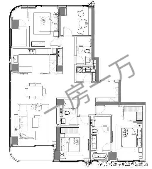 虽然户型少了一间房,但整体公区设计更加豪华。