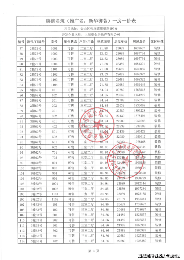 一房一价表如下:
