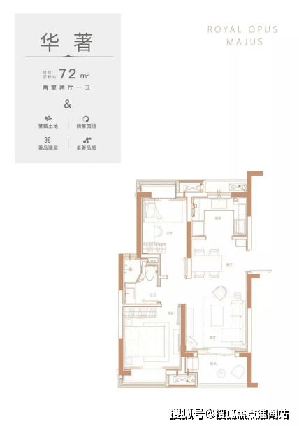 建面约72m²的两室两厅一卫设计,大大降低了置业门槛,对于刚需置业者也是非常友好的一个价格。户型方面,南北通透,居住舒适。两开间朝南,全明设计,采光面广。