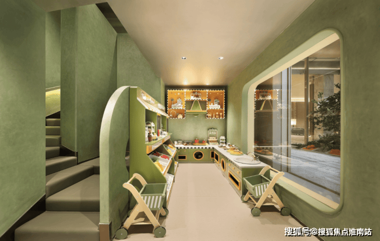 它还把会所跟架空层上下连通,做出了一个完全不输专业儿童乐园的童玩区,里面有6米多高的旋转滑梯,有可以让小朋友穿梭玩闹的「魔法树洞」,有巨大的空中攀爬网架,还有小朋友最爱的玩角色扮演的小厨房……