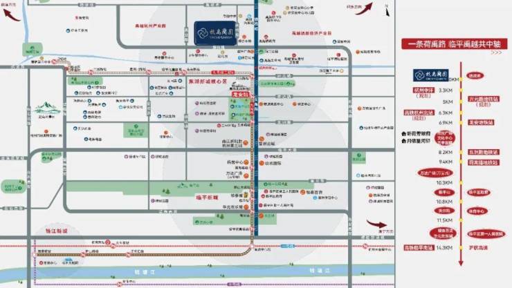 项目毗邻荷禹路,快速通达杭州秋石高架、东湖高架等快速路及练杭高速,向北可到新市武康,市内及省内通达性佳。教育配套包括徐家庄中心幼儿园,徐家庄中心小学,禹越镇初级中学等。休闲配套有越丰广场,振兴公园,体育公园等。而医疗配套包括镇卫生服务中心,东湖新城规划三甲医院等。