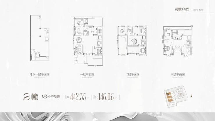 户型:联排 406-425㎡、双拼 430-450㎡、类独栋 509-538㎡