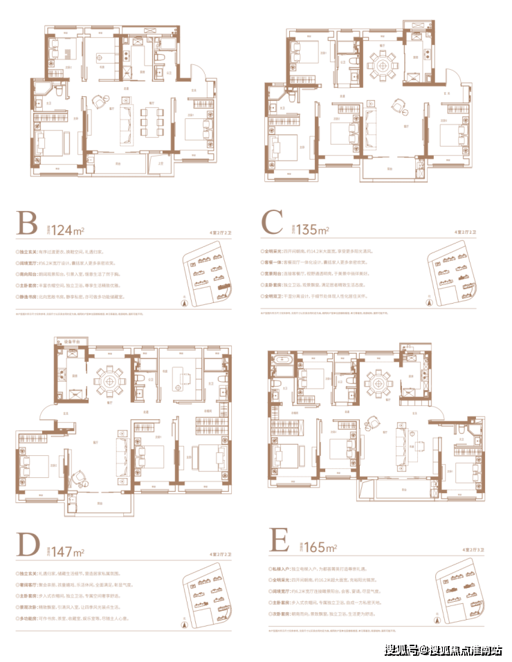 而佳运·瑞璟湾做出了差异化,为改善型群体开了一扇久违的“窗”,户型涵盖建筑面积约100㎡3房2卫、124㎡4房2卫、135㎡4房2卫、147㎡4房2卫,165㎡4房3卫。