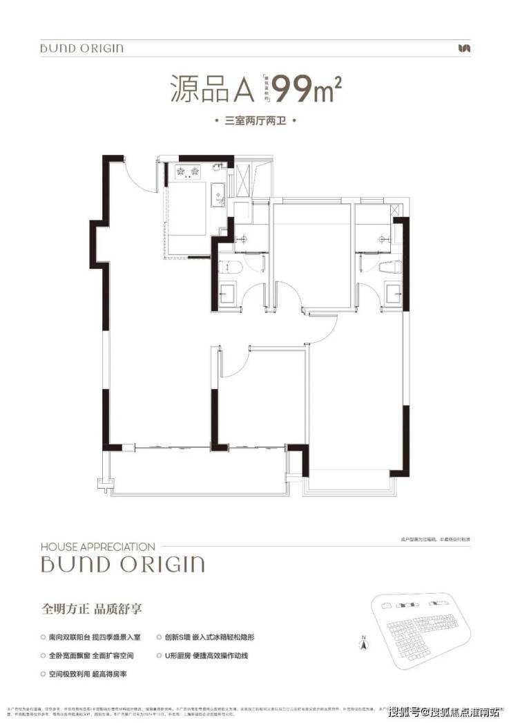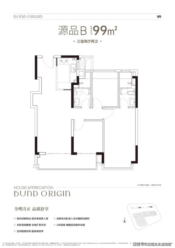 外滩源著售楼处电话:400-891-9910✔✔✔建面约99㎡3房2厅2卫,非常标准的动静分离、三开间朝南户型。