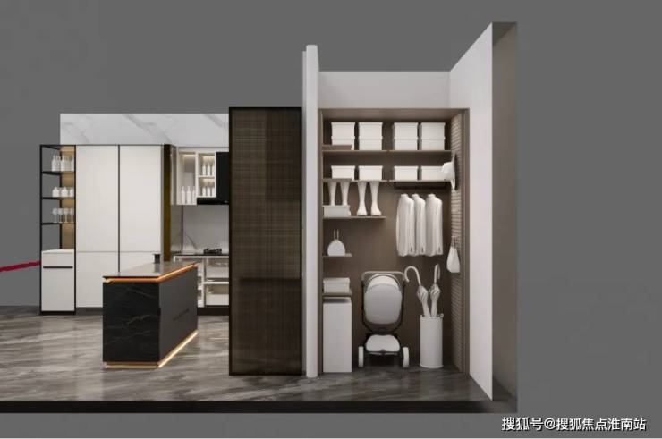 "分户s墙"设计在分户墙处增设“凹型空间",“冰箱外移"增加厨房操作台面和收纳空间,创造更合理的餐厨桌台动线。