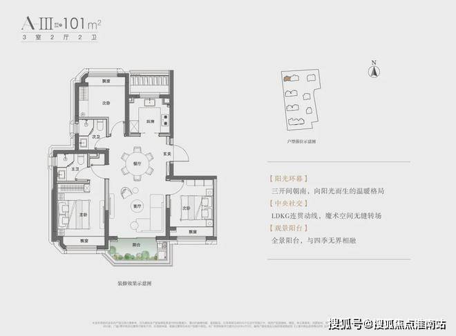 目前开放的是建面约101㎡3房和约169㎡3房两个样板间,直接来看101㎡现场实拍。