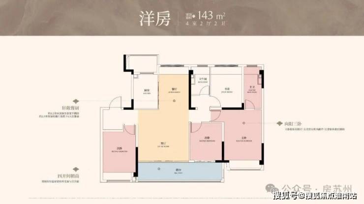 四开间朝南:双联阳台延展家的采光面与赏景面.l向阳三卧:主卧梳妆有阳光,儿童房玩积木敞亮,长辈卧休憩也暖和.