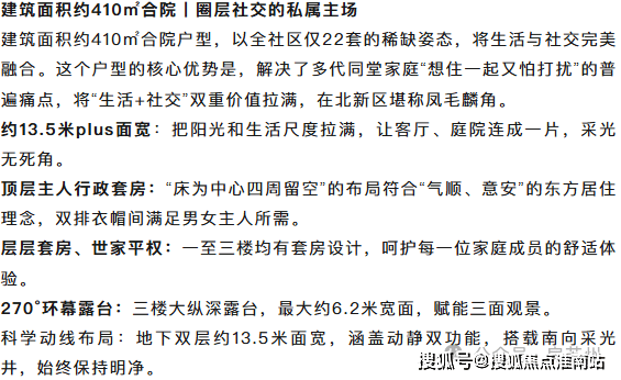 业态产品:3F合院(约280/360/410/470㎡)、6F叠墅(上叠170/187㎡、中叠170/187㎡、下叠270/300㎡)、11F洋房约117/136/143㎡