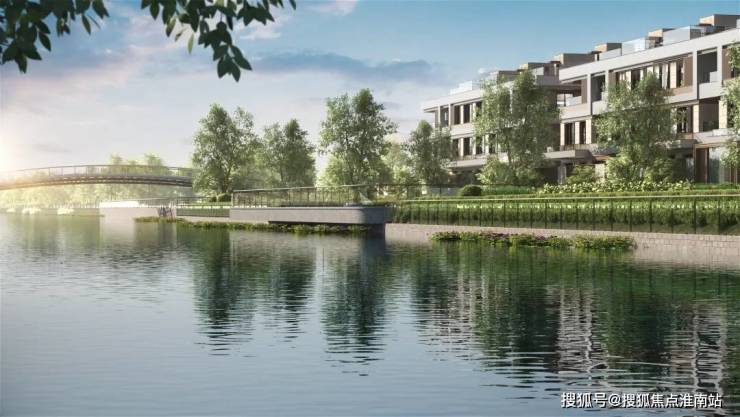 联排别墅区则采用“一环两轴”的规划布局,在保障私密性的同时,增添了趣味性,南向直面天然河道,未来业主可一步踏入滨水生态区,尽享自然风光