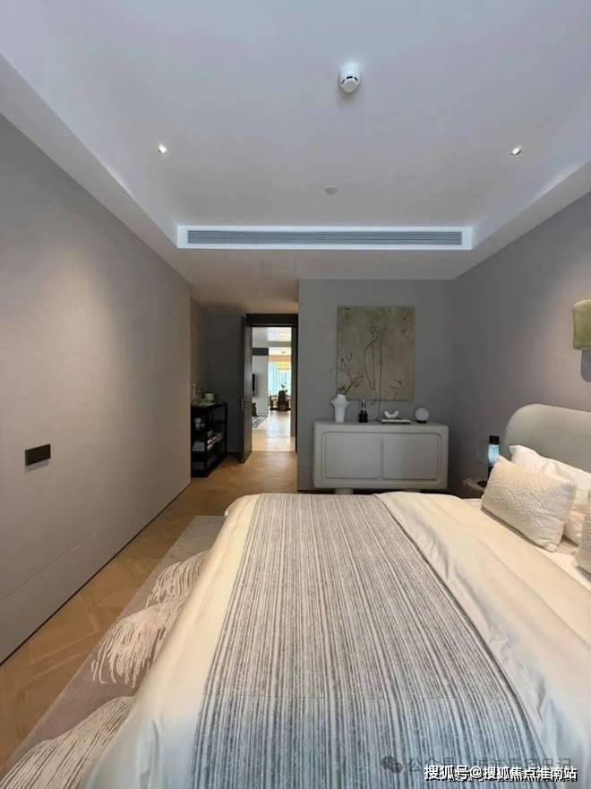 边套户型横厅设计,客厅约5.3米的面宽保证了空间的尺度感,客厅及南侧卧室的大面积落地窗,加上北面大面积飘窗,约270度的采光+视野,保证了室内充足的自然光线。两南一北的卧室布局,尽可能把南向尺度给到卧室,提高居住的舒适性。宽敞的步入式衣帽间,主卫双台盆和宽敞的淋浴区,每一个清晨都是感官的享受,每一个夜晚都是身心的彻底放松。