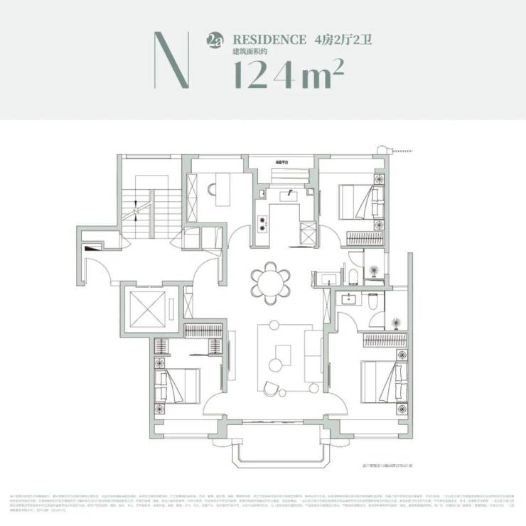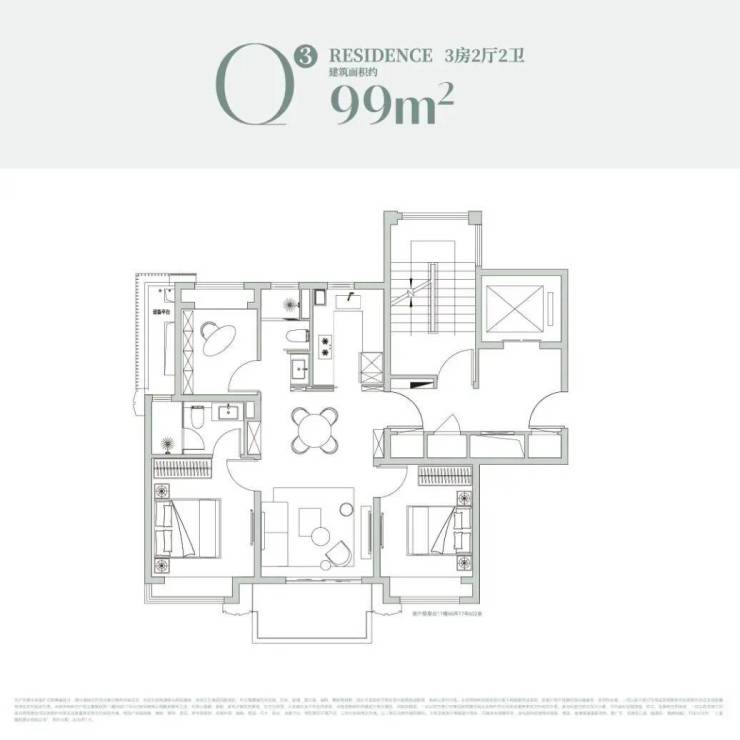 正三面宽朝南格局,搭配观景阳台与全明飘窗,既最大化延伸实用空间,更拓宽观景视野;客餐厅一体化连贯布局,餐桌周边形成流畅洄游动线,告别冗余走道设计,每一寸空间都物尽其用;