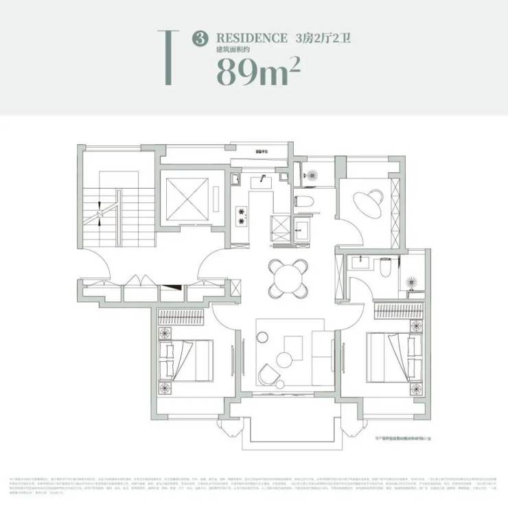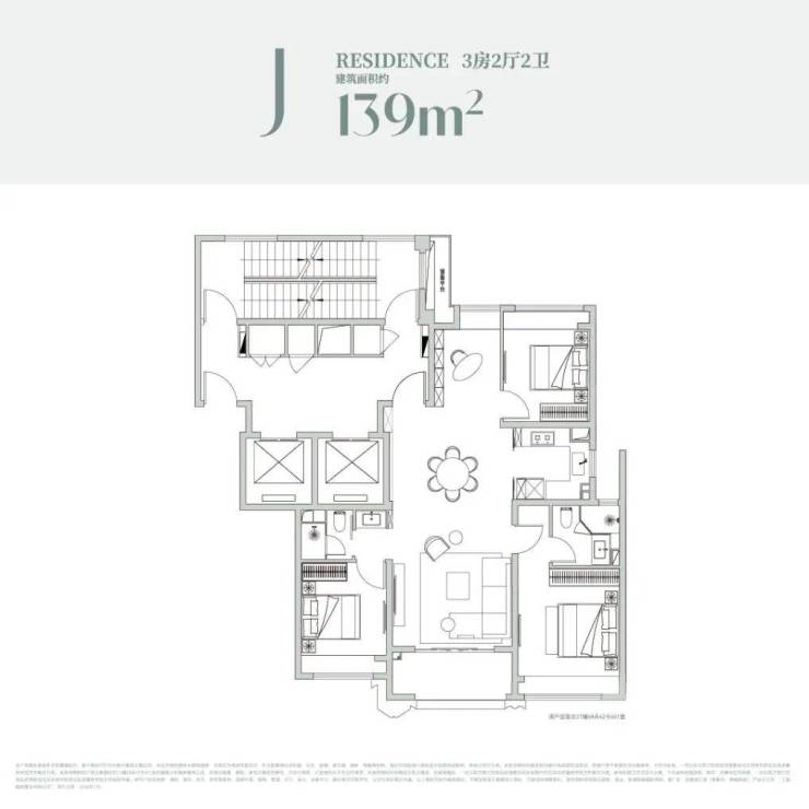 南侧三开间全明布局,实现居住平权,每间卧室都能享有充足采光与舒适尺度;