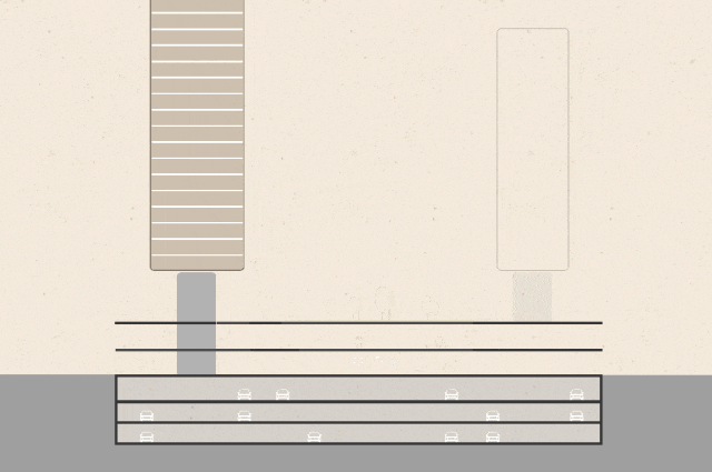 动线组织上,底盘遵循“人车分流”“客货分流”“主服分径”原则:每一层都是无风雨归家设计,业主可从任何一层直达居所、无需转层,实现从容归家。