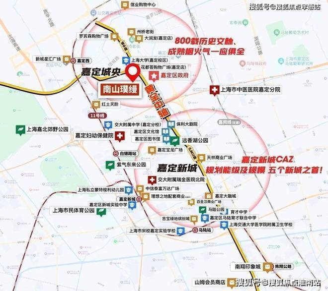 而在嘉定,主轴只有一条:城中路-沪宜公路-嘉闵高架组成的烫金主轴